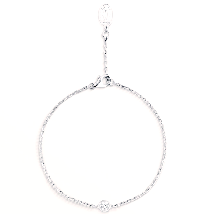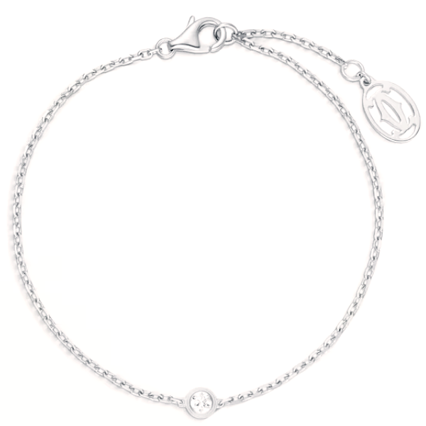 까르띠에 다무르 브레이슬릿, 750/1000 화이트 골드, 총 0.04캐럿의 브릴리언트 컷 다이아몬드 세팅. 두께: 1.78mm. 패턴 직경: 3.79mm. 길이: 165-185mm(17사이즈용).