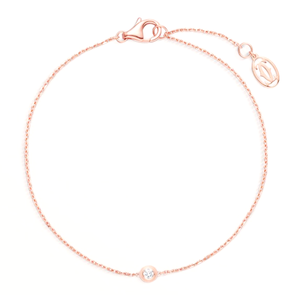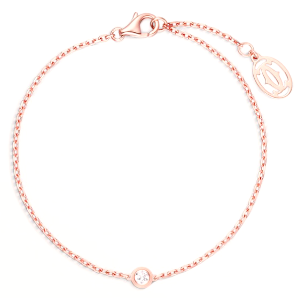 까르띠에 다무르 브레이슬릿, 750/1000 핑크 골드, 총 0.04캐럿의 브릴리언트 컷 다이아몬드 세팅. 두께: 1.78mm. 패턴 직경: 3.79mm. 길이: 165-185mm(17사이즈용).