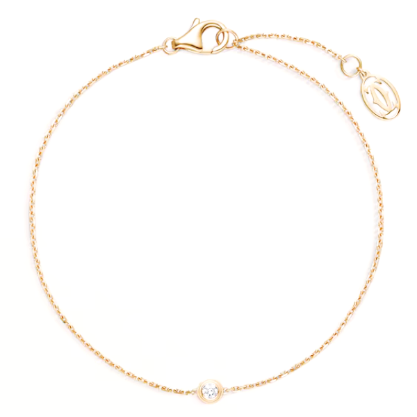 까르띠에 다무르 브레이슬릿, 750/1000 옐로우 골드, 총 0.04캐럿의 브릴리언트 컷 다이아몬드 세팅. 두께: 1.78mm. 패턴 직경: 3.79mm. 길이: 165-185mm(17사이즈용).