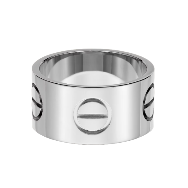 - LOVE 웨딩 링, 750/1000 화이트 골드. 폭: 11mm. 두께: 1.3 mm (52사이즈)