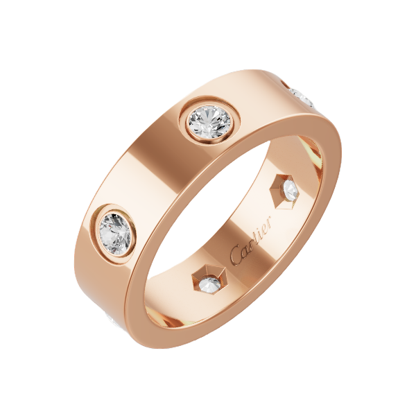 LOVE 링, 750/1000 핑크 골드, 총 0.46캐럿의 브릴리언트 컷 다이아몬드 6개 세팅. 폭: 5.5mm (52사이즈)