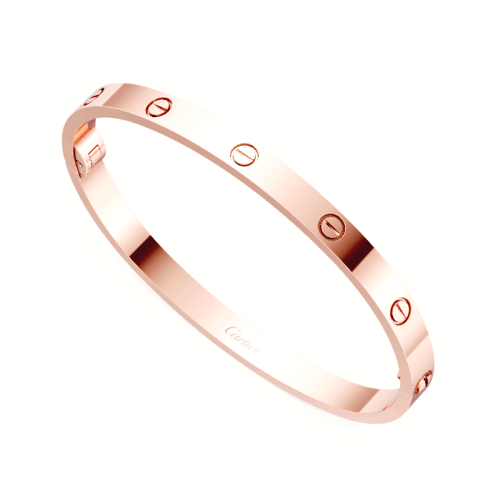 LOVE 브레이슬릿, 미디엄(medium) 모델, 750/1000 핑크 골드, 기능성 스크루와 힌지로 구성된 잠금장치 시스템. 스크루 드라이버 포함. 폭 4.8mm.