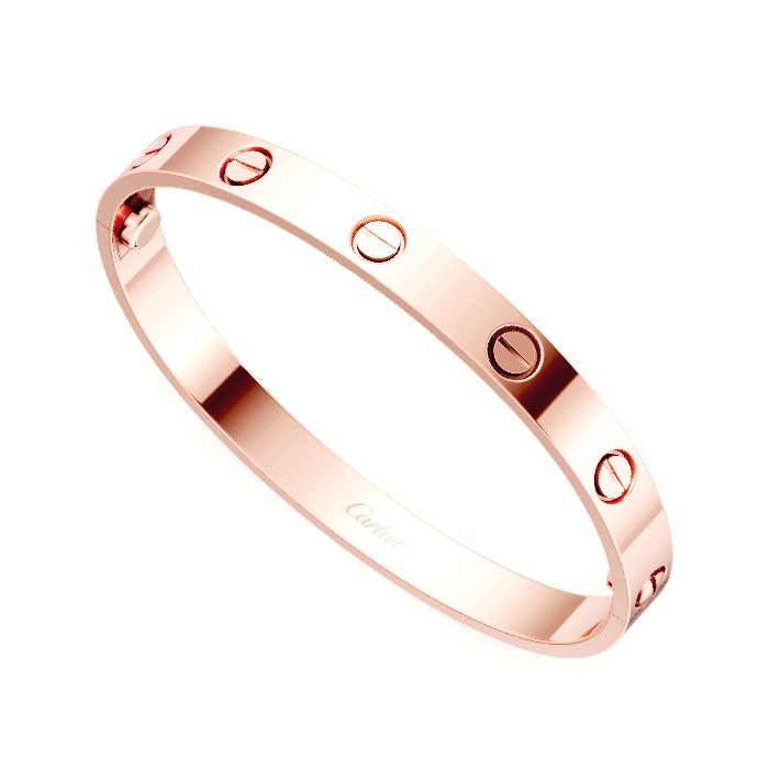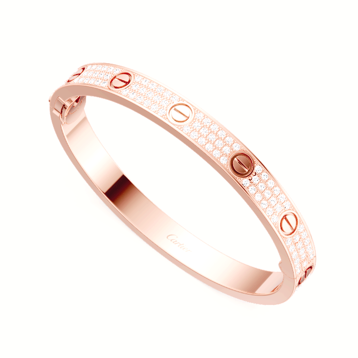 LOVE 브레이슬릿, 750/1000 핑크 골드, 총 2캐럿의 브릴리언트 컷 다이아몬드 204개 세팅. 폭: 6.7mm