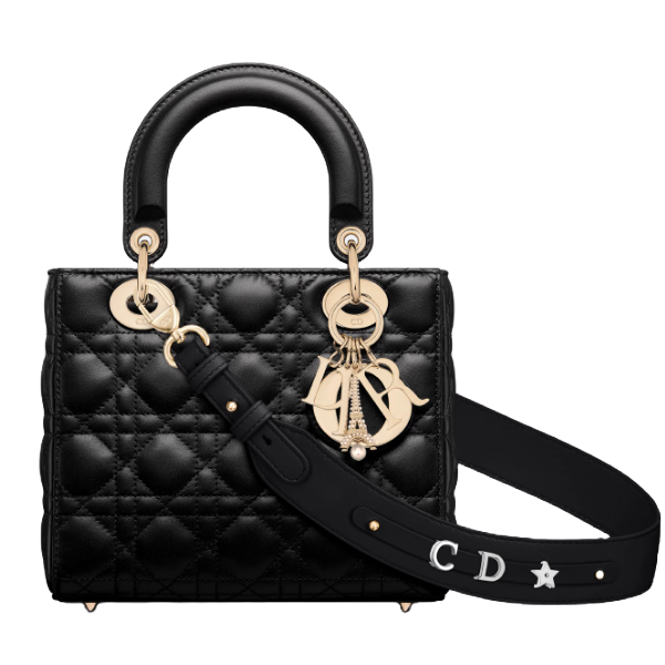 우아함과 아름다움에 대한 디올 하우스의 비전을 완벽하게 표현한 Lady Dior My ABCDior 백입니다. 세련되고 고급스러운 디자인의 타임리스 스타일로, 까나쥬 스티칭으로 장식한 블랙 양가죽 소재가 한눈에 알아볼 수 있는 퀼트 텍스처를 연출합니다. 페일 골드 피니시 메탈 D.I.O.R. 블록 참은 이번 컬렉션의 주요 심벌을 담아 화이트 레진 진주 장식의 에펠탑 참으로 완성되었습니다. 숄더 스트랩에 배지 장식을 더해 개성을 표현할 수 있는 유니크한 스몰 백으로 핸드백이나 크로스백으로 연출하기 좋습니다.
