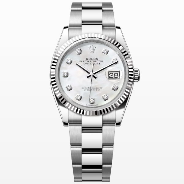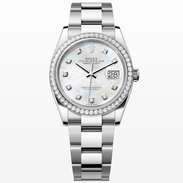 오이스터, 36mm, 오이스터스틸, 화이트 골드와 다이아몬드