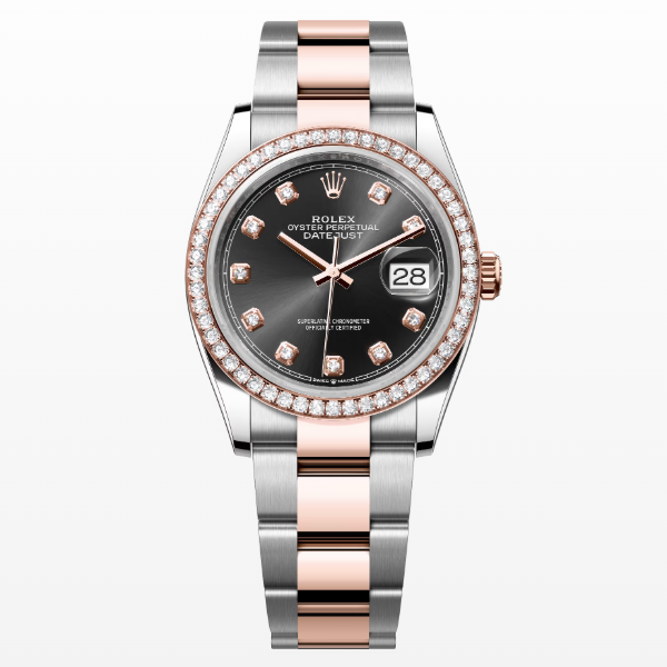 오이스터, 36mm, 오이스터스틸, 에버로즈 골드와 다이아몬드
