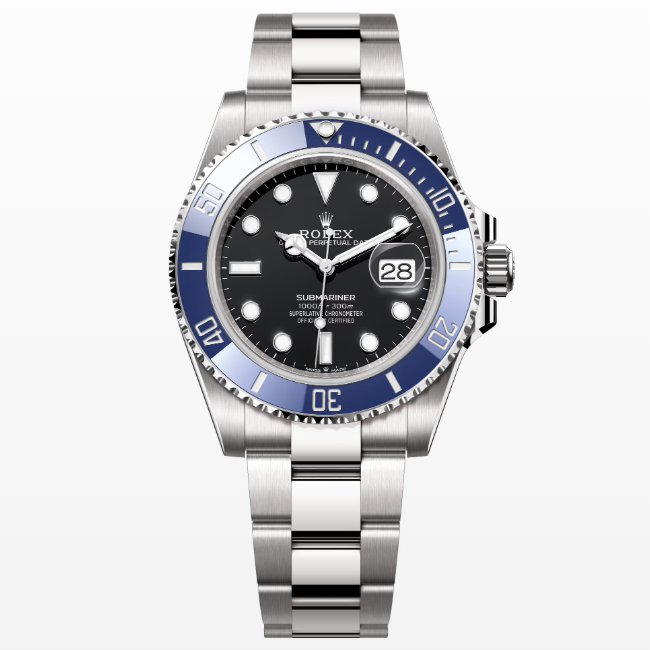 - 베젤: 60분 눈금이 새겨진 한 방향 회전 베젤, 블랙 세라믹 소재의 긁힘 방지 세라크롬 인서트, 플래티넘 코팅된 숫자와 눈금