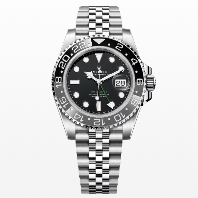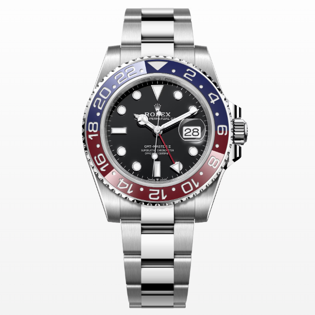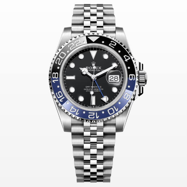 - 베젤: 24시간 눈금이 새겨진 양방향 회전 베젤. 세라믹 소재의 블루 및 블랙의 2가지 색상이 사용된 세라크롬 인서트, 몰딩된 숫자와 눈금