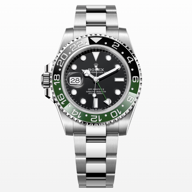 - 베젤: 24시간 눈금이 새겨진 양방향 회전 베젤. 세라믹 소재의 블루 및 블랙의 2가지 색상이 사용된 세라크롬 인서트, 몰딩된 숫자와 눈금