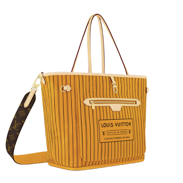 시대를 초월하는 매력을 담아 리버서블 디자인으로 새롭게 선보이는 상징적인 네버풀 반둘리에 인사이드 아웃 MM 토트 백. 모노그램 캔버스 소재와 스트라이프 패턴을 입힌 밝은 색상의 텍스타일 소재로 이루어진 아이템. 숄더 백으로 연출할 수 있는 탈착형 스트랩. 옆면 후크를 활용하여 호보 실루엣으로 변형할 수 있는 스타일.