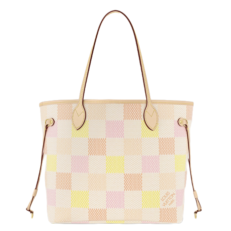 서로 다른 네 개의 파스텔 색조를 경쾌하게 조합하여 다미에 자이언트 캔버스 소재로 선보이는 네버풀 MM 토트백. 넉넉한 수납공간. 양옆의 끈을 조이거나 입구를 느슨하게 열어 캐주얼하게 연출할 수 있는 캐리올 아이템. 별도로 사용할 수 있는 매칭되는 캔버스 소재의 탈착형 지퍼 파우치가 구성된 내부.