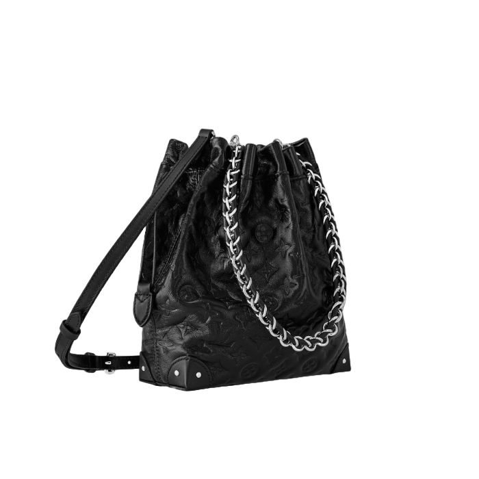 2025 크루즈 컬렉션에서 재해석해 선보이는 유서 깊은 노에 핸드백. 가죽 소재의 모서리와 드로스트링 잠금장치 등 DNA가 담긴 상징적인 디테일을 더해 트렁크 라인에서 새롭게 선보이는 디자인. 양각 처리한 하우스의 시그니처 모노그램을 입힌 고급스러운 램스킨 소재. 실버 색조의 브레이디드 체인으로 세련된 매력을 더한 활용도 높은 백. 손으로 들거나 탈착형 스트랩을 활용하여 크로스 바디 백으로 연출할 수 있는 액세서리.