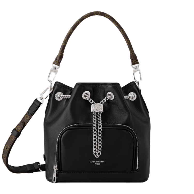 LV 바이브 컬렉션에서 선보이는 노 웨이(No Way) 핸드백. 아이코닉한 노에 스타일에서 영감을 받은 현대적인 디자인에 록 감성을 불어넣은 아이템. 백 입구를 조절하고 장식적인 효과를 선사하는 글라이딩 LV 서클 등의 실버 색상 하드웨어를 장식한 램스킨 소재의 디자인. 열쇠와 메이크업 필수품을 수납할 수 있는 앞면의 지퍼형 포켓.