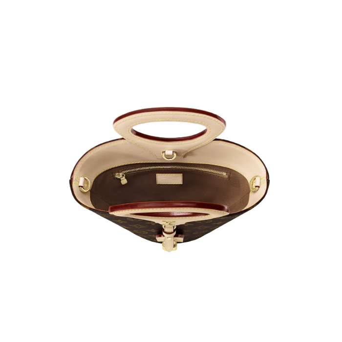 니콜라 제스키에르가 2025 봄-여름 패션쇼에서 선보인 리바주 BB(Rivage BB). 루이 비통의 헤리티지를 기리며 1999년 출시된 녹탕뷜 핸드백을 재해석한 버킷 모양의 실루엣. 트렁크 핸들, LV 각인을 더한 패드락, 가죽 소재의 러기지 택 등 하우스의 다양한 시그니처를 더한 모노그램 캔버스 소재의 디자인. 스트랩을 연결하여 크로스 바디 백으로 연출할 수 있는 아이템.