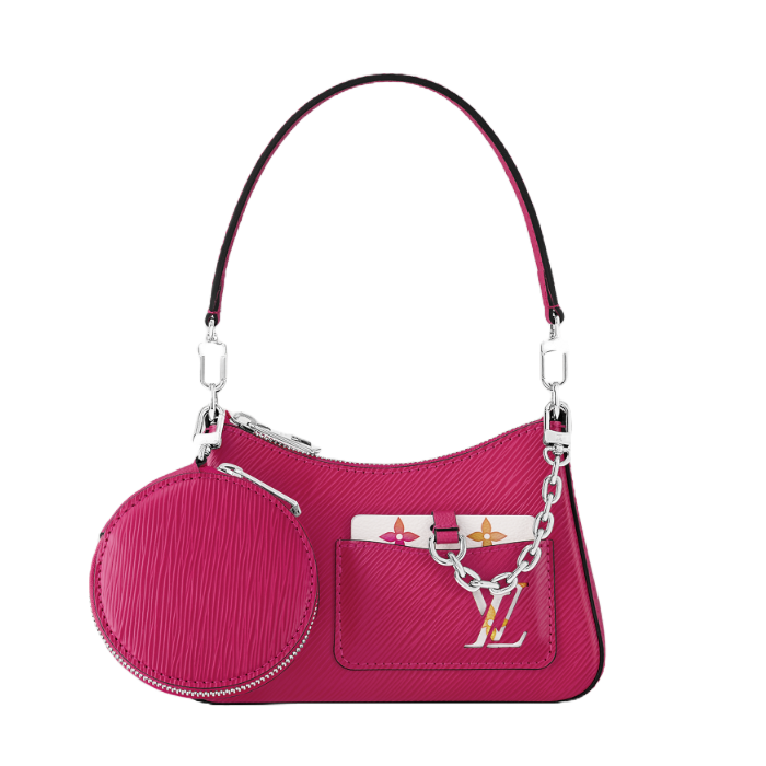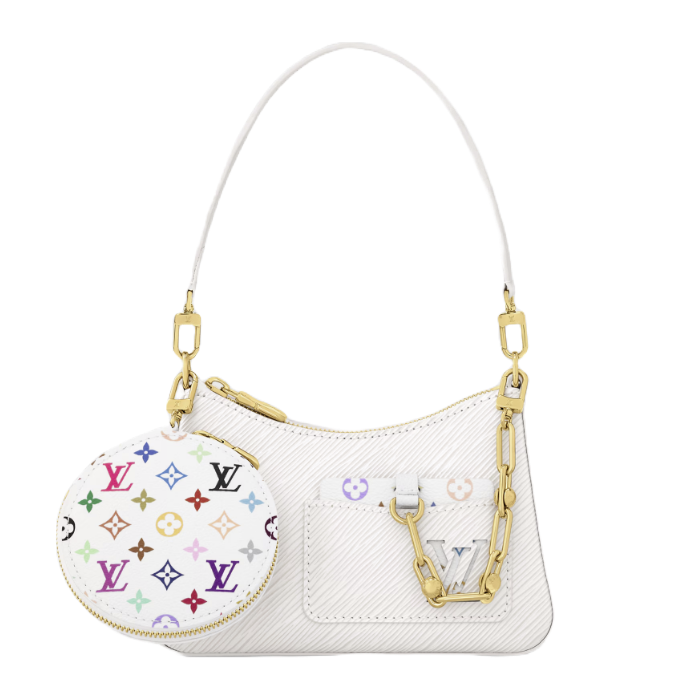우아한 아름다움을 스타일리시하게 표현한 마렐리니. 풍부한 질감이 돋보이는 하우스의 에피 가죽 소재. 데일리 필수품을 보관하기에 충분히 넉넉한 수납 공간을 갖춘 작은 크기의 디자인. 도전적인 분위기를 자아내는 골드 색상의 청키한 체인에 멀티컬러 색상 모노그램 캔버스 소재로 제작한 루이 비통 x 무라카미 컬렉션의 둥근 코인 퍼스 및 거울이 연결되어 유쾌한 대비를 선사하는 아이템.