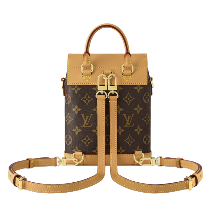 모노그램 캔버스 소재로 선보이는 소호 미니(Soho Mini). 1996년의 아를르캥 백팩이 연상되는 아담하면서도 기능적인 디자인. 일상과 여행에 모두 사용할 수 있도록 고안된 아이템. 트렁크를 제작해온 하우스의 아이코닉한 헤리티지를 담아낸 천연 카우하이드 가죽 소재의 트리밍과 빈티지한 분위기의 버클. 수많은 스타일로 연출할 수 있게 해주는 다섯 개의 D링이 특징.