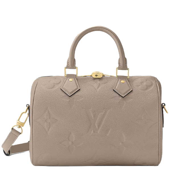오버사이즈 모노그램 패턴을 양각 처리한 그레인 모노그램 앙프렝뜨 가죽 소재로 은은한 매력을 자아내는 스피디 반둘리에 25(Speedy Bandoulière 25) 핸드백. 깔끔한 실루엣과 토론 핸들, 각인 디테일의 패드락, 조절 및 탈착 가능한 스트랩이 한눈에 시선을 사로잡는 디자인. 넉넉한 수납공간과 착용감이 편안한 구조가 특징인 매우 실용적인 아이템.