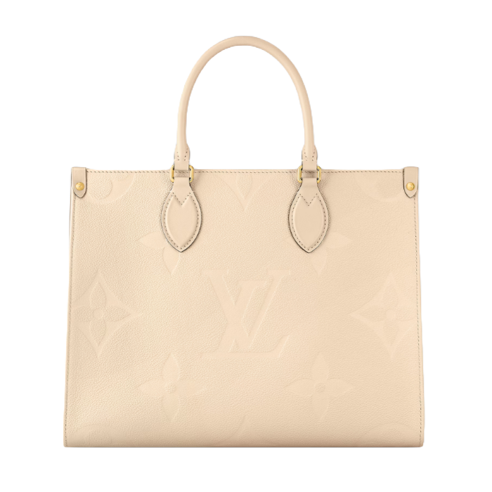 크림 색상의 모노그램 앙프렝뜨 가죽과 매칭되는 마이크로화이버 소재의 안감으로 구성된 온더고 MM(OnTheGo MM) 토트 백. 그레인 가죽에 모노그램 패턴을 양각으로 새겨넣어 박시한 실루엣에 은은하고 우아한 매력을 불어넣은 디자인. 노트북을 수납하기 좋은 넉넉한 내부 공간. 둥글게 말아 완성한 상단 핸들과 두 개의 숄더 스트랩을 활용하여 다양한 스타일로 연출할 수 있는 아이템.