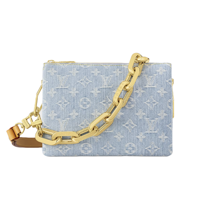 면 데님 100%의 모노그램 데님 소재가 경쾌한 여름 분위기를 자아내는 쿠상 BB 핸드백. 모노그램 패턴을 먼저 새겨넣은 후 표백 및 스톤워싱 공정을 거친 독특한 패브릭. 탈착 가능한 청키한 체인 및 스마트한 가죽 스트랩.