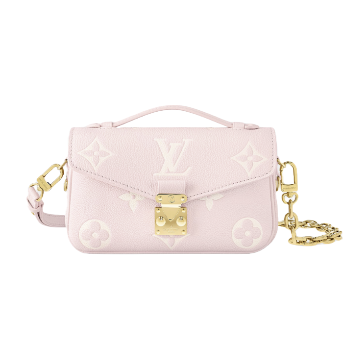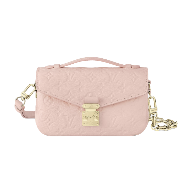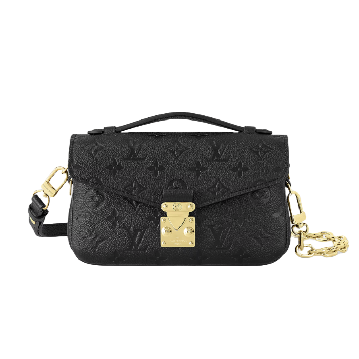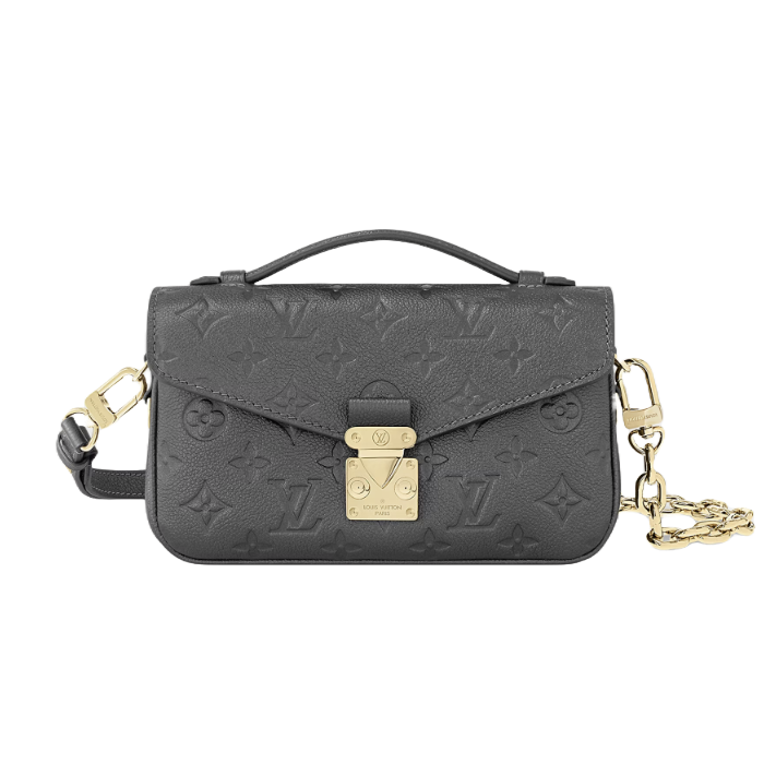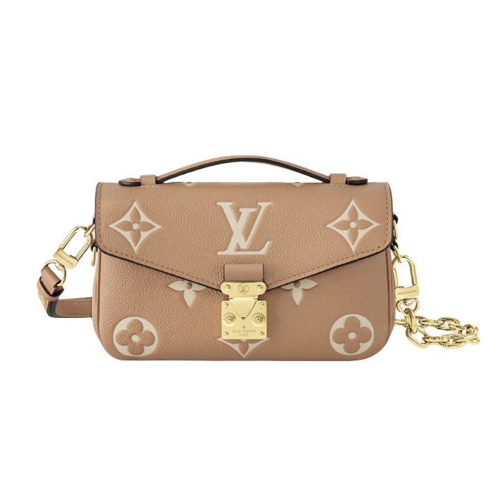모노그램 패턴을 양각으로 새긴 모노그램 앙프렝뜨 가죽 소재로 선보이는 포쉐트 메티스 이스트 웨스트(Pochette Métis East West) 핸드백. 루이 비통의 클래식한 스타일과 현대적인 디테일이 조화를 이루는 디자인. 하우스의 유서 깊은 트렁크를 연상시키는 S락 및 상단 핸들. 탈착형 체인을 활용해 짧은 숄더 백으로 트렌디하게 연출할 수 있는 컴팩트한 사이즈의 백.