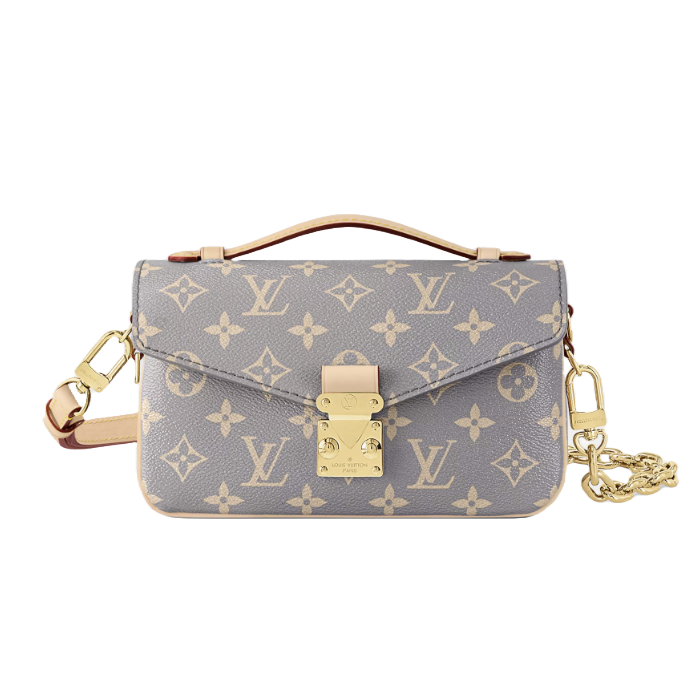 2024 가을-겨울 레디 투 웨어 컬렉션과 조화를 이루도록 고안된 파리지앵 감성의 우아한 색조가 특징인 포쉐트 메티스 이스트 웨스트(Pochette Métis East West). 하우스의 유서 깊은 트렁크에서 영감을 받은 부드러운 색상 조합이 돋보이는 상징적인 모노그램 코팅 캔버스 소재. 매끄러운 천연 카우하이드 가죽 소재의 트리밍. 세련된 골드 색상의 S락 잠금장치.