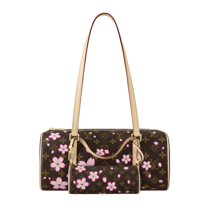 신선한 매력을 자아내는 둥글고 가로가 긴 실루엣의 빠삐용 핸드백. 하드웨어에 연결된 미니어처 버전의 백이 유쾌한 감각을 선사하는 디자인. 하우스의 아이코닉한 모노그램 코팅 캔버스 소재에 상징적인 천연 가죽 소재의 트리밍을 구성한 스타일. 발랄한 분위기를 더해주는 루이 비통 x 무라카미 리에디션 컬렉션의 체리 블라썸 모티프. 반항적인 감성이 살짝 엿보이는 스터드 디테일의 스트랩.