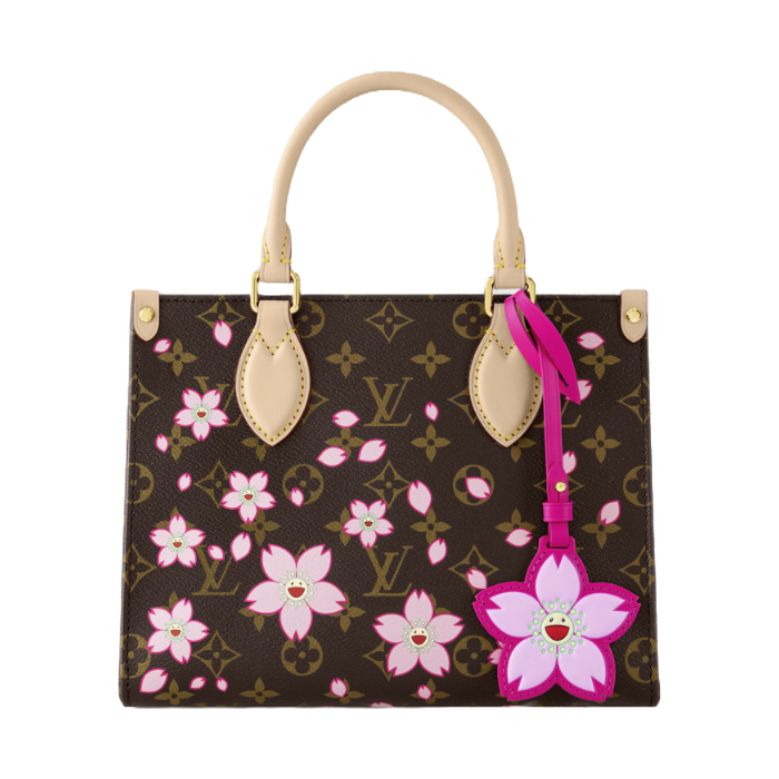 익스클루시브한 루이 비통 x 무라카미 리에디션 컬렉션에서 체리 블라썸 모티프로 유쾌하게 재해석해 선보이는 시대를 초월하는 온더고 PM 핸드백. 하우스의 아이코닉한 모노그램 코팅 캔버스 소재에 일본 예술가 무라카미 다카시의 부활을 상징하는 선명한 플로럴 모티프를 입힌 디자인. 천연 카우하이드 가죽 소재의 트리밍과 골드 색상의 하드웨어를 구성한 스타일. 시즌 특유의 감성을 선사하는 탈착 가능한 체리 블라썸 참.