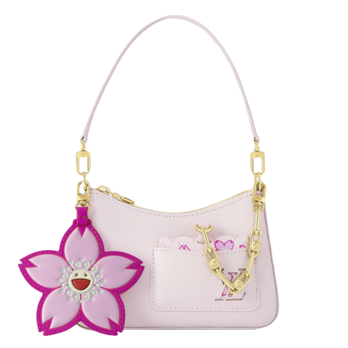 루이 비통 x 무라카미 리에디션 컬렉션의 유쾌한 시그니처 디테일을 더해 새롭게 선보이는 마렐리니 핸드백. 하우스의 시그니처 에피 그레인 가죽 소재. 반짝이는 골드 색상의 하드웨어로 생기를 불어넣은 치키 핑크 색감의 디자인. 체리 블라썸 모티프가 돋보이는 모노그램 캔버스 소재의 대조적인 탈착형 거울. 조화를 이루는 체리 블라썸 백 참이 시즌 특유의 분위기를 강조하는 아이템.