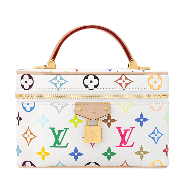 하우스의 아이코닉한 시그니처를 예술가 무라카미의 경쾌한 색조로 재해석한 루이 비통 x 무라카미 리에디션 컬렉션의 멀티컬러 모노그램 모티프로 생기를 더해 선보이는 베니티 파우치. 시대를 초월하는 우아한 아이템. 코팅 캔버스 소재. 천연 카우하이드 가죽 소재의 트리밍. 지퍼형 잠금장치, 탈착형 체인, LV 시그니처가 새겨진 상징적인 패드락 등 반짝이는 골드 색상의 하드웨어.