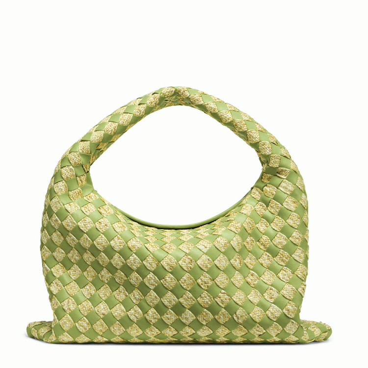 - 가죽 및 라피아 소재를 인트레치아토 수공 기법으로 완성한 스몰 숄더 백