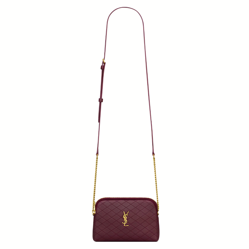퀼팅 탑스티치 및 CASSANDRE 장식이 돋보이는 미니 지퍼 카메라 백.