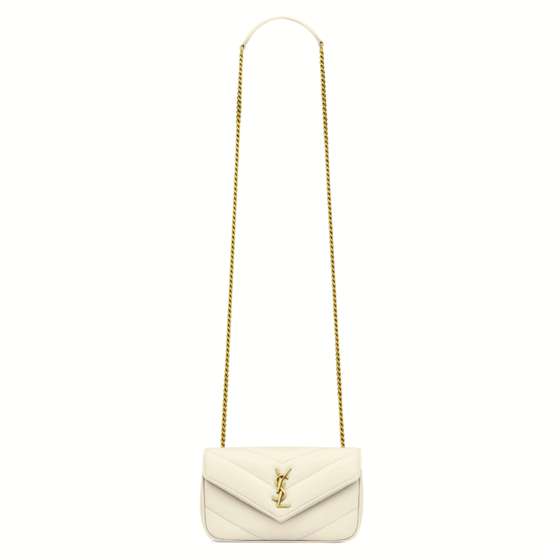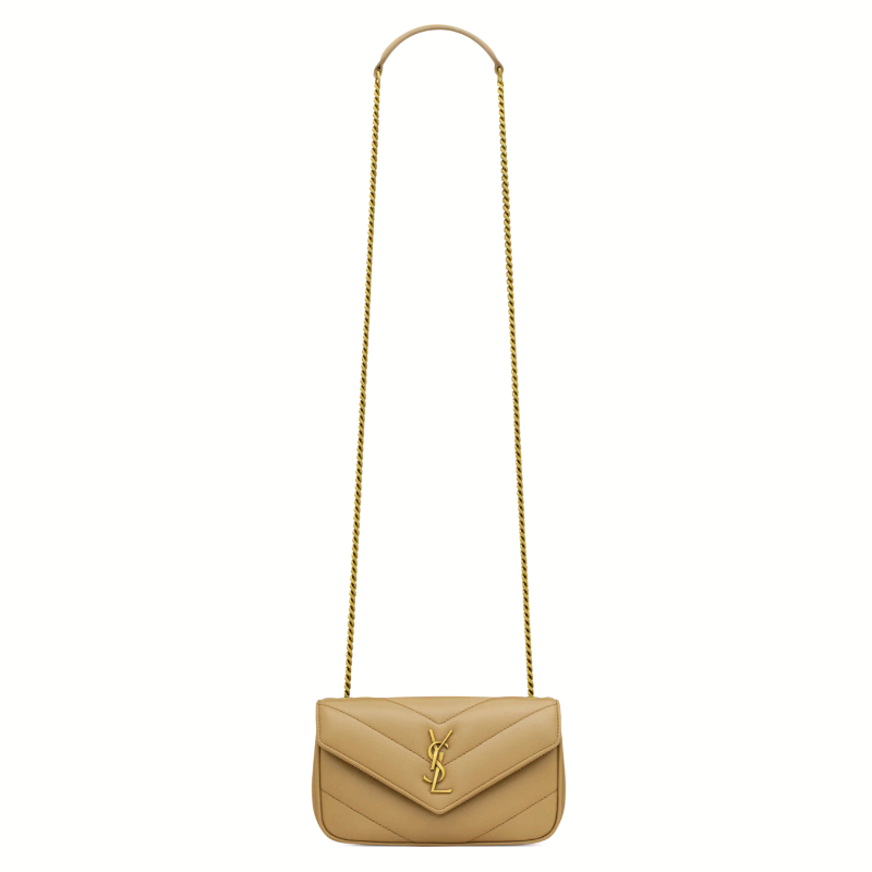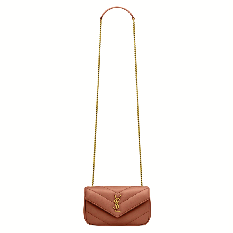 LOULOU 백 미니 버전, 램스킨 소재, 아이코닉 쉐브론 퀼팅 탑스티칭 장식.