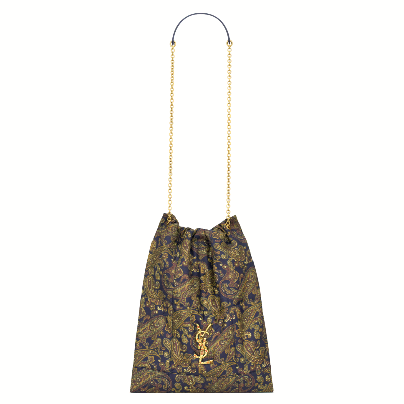 가볍고 넉넉한 공간을 갖춘 백, 드로우스트링 체인으로 조절하여 다양하게 연출 가능한 디자인.