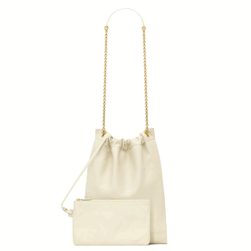 JAMIE 의 파우치 버전, 유연한 나파 소재, carré rive gauche 탑스티치 장식, 탈착 가능한 지퍼 파우치.