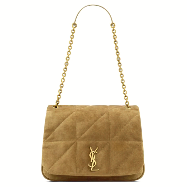 JAMIE 백의 미디엄 버전. 스웨이드 소재, CARRÉ RIVE GAUCHE 탑스티치 장식.