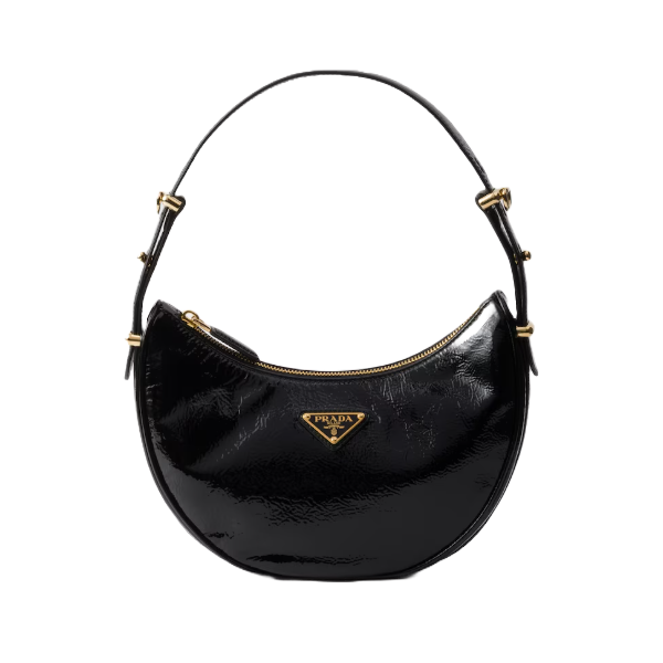 독특한 광택 효과와 텍스처를 더하는 빈티지한 매력의 나플락 페이턴트 가죽으로 돋보이는 부드러운 라인의 프라다 아르케 백입니다. 우아한 골드톤 하드웨어가 디자인을 장식합니다